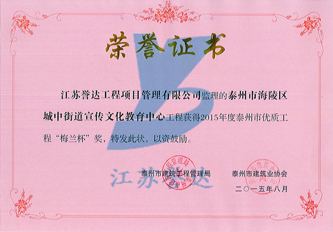 我公司成立于1996年,注冊資金6000萬元,公司有關資質為:工程造價咨詢甲級,房屋建筑工程監理甲級,市政公用工程監理甲級,人防工程監理甲級,電力工程監理乙級,水利水電工程監理乙級,公路工程監理乙級,文物保護監理乙級,招標代理資質、政府采購代理資質,工程咨詢資質。公司于1999年被江蘇省建設廳命名為省級先進監理企業、2005年及2009年獲江蘇省建設廳優秀監理企業,2008年獲江蘇省監理協會“建設監理發展二十周年工程監理先進企業”,2009年及2014年3月獲泰州市建設局“建設工程監理工作先進單位”。2001年至2012年連續十二年獲泰州市重合同守信用企業。 [ 查看詳情 ]